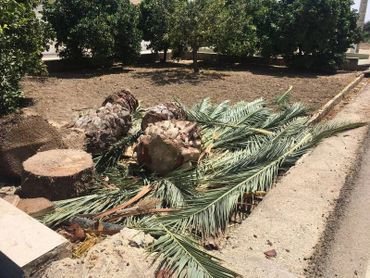 Otro de los casos en los que es necesaria la tala de palmeras es cuando estos ejemplares están abandonados y totalmente devastados por el picudo rojo.
